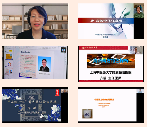 開幕式結(jié)束后,大會開展了線上學(xué)術(shù)報告和學(xué)術(shù)交流活動。董瑞會長做了《中醫(yī)膏方概論》的學(xué)術(shù)報告;北京中醫(yī)藥大學(xué)蘇慧萍教授、中國中醫(yī)科學(xué)院西苑醫(yī)院張燕萍教授、港澳臺中醫(yī)醫(yī)師聯(lián)合促進(jìn)會總會會長盧致鵬教授、上海中醫(yī)藥大學(xué)岳陽中西醫(yī)結(jié)合醫(yī)院齊瑞教授、遼寧中醫(yī)藥大學(xué)附屬第二醫(yī)院龐敏教授、廣西中醫(yī)藥大學(xué)第一附屬醫(yī)院賓博平教授六位中醫(yī)膏方專業(yè)委員會副會長分別作了《膏方防治慢阻肺的組方用藥特點(diǎn)》《膏方的個體化應(yīng)用》《脾胃系統(tǒng)(慢性胃炎疾?。┑闹形麽t(yī)論述臨床觀察與證型研究》《海派膏方的特點(diǎn)》《膏方臨床應(yīng)用思路》《中醫(yī)膏方臨床概論》的學(xué)術(shù)報告,并與在線專家學(xué)者進(jìn)行了互動交流。中醫(yī)膏方專業(yè)委員會第二屆理事會換屆會議暨第五屆學(xué)術(shù)年會取得了圓滿成功。