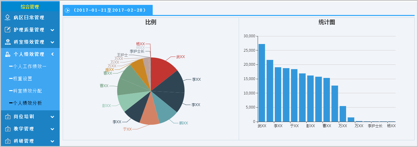 電子績(jī)效計(jì)算與分析系統(tǒng),支持科室、個(gè)人績(jī)效統(tǒng)計(jì)、績(jī)效權(quán)重設(shè)計(jì)與分析