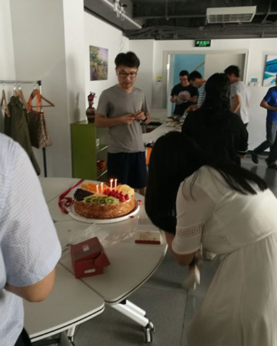 接下來“傳統(tǒng)生日會”照例為5月份過生日的同事點燃蠟燭(本月為七位天坦伙伴),唱起祝福的生日歌,分享香甜可口的蛋糕,頒發(fā)“功夫熊貓”紀念品,集齊24式功夫熊貓可能得到天坦超級大獎,這也是“壽星”最大的幸運,同時也是為了激勵天坦人勇往拼搏、直線進取設置的最大獎項。