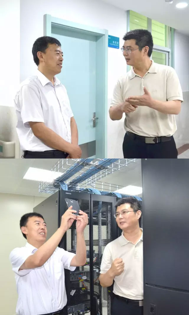 泰安電信公司總經(jīng)理侯啟敬在參觀我院機(jī)房時(shí),對(duì)線向的布局贊不絕口,并用手機(jī)拍照